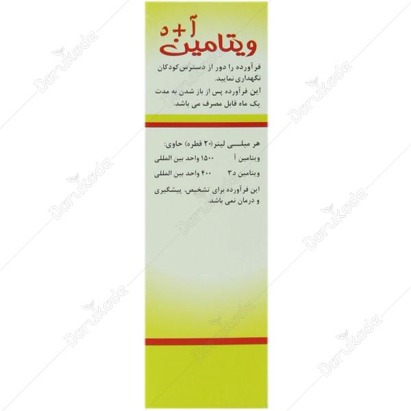 • ویتامین آ  د تولید دارو، حاوی 1500 واحد ویتامین A  و 400 واحد ویتامین D