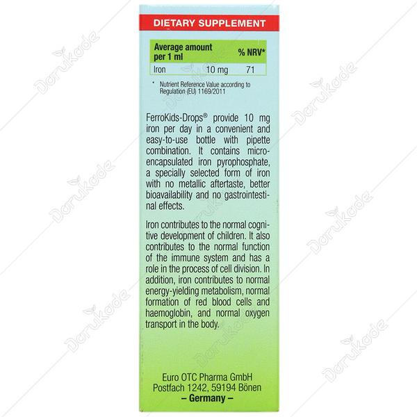 قطره فروکیدز یوروویتال، مکمل غذایی حاوی آهن (به صورت ملح پیروفسفات) برای تشکیل گلبول های قرمز خون و تکامل سیستم ادراکی وحافظه در کودکان می باشد. قطره آهن فروکیدز تامین کننده آهن به میزان 10 میلی گرم روزانه می باشد.