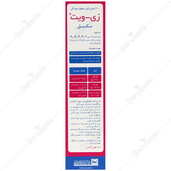 • زی ویت حاوی زینک، ویتامین C و ویتامین‌های گروه B