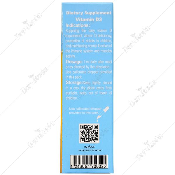 کوله کلسیفرول (ویتامین D) یک ویتامین محلول در چربی می باشد که برای سلامتی استخوان ها در طول عمر ضروری است کلسیم که عنصر اصلی استخوان و دندان است تنها در صورت حضور ویتامین D قابل جذب است. ویتامین D در معرض نور خورشید در پوست بدن ساخته می شود. افرادی که نور مستقیم خورشید را دریافت نمی کنند(زندگی در مناطق بدون آفتاب، و یا پرهیز از آفتاب به دلیل عوارض نورآفتاب از جمله حساسیت پوستی در کودکان و نوزادان و احتمال بروز سرطان پوست در بزرگسالان، استفاده از کرم های ضدآفتاب و پوشاندن پوست با لباس) توصیه می شود از مکمل های ویتامین D استفاده نمایند. قطره خوراکی 15 میلی لیتری کید 3 حاوی 400 واحد بین المللی کوله کلسی فرول (D3) در هر میلی لیتر می باشد که با توجه به کمبود ویتامین D در شیر مادر و عدم دریافت نور مستقیم خورشید در بزرگسالان برطرف کننده نیاز این افراد می باشد.