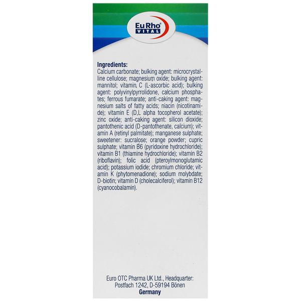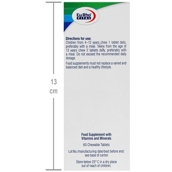 قرص مولتی پلاس کیدز یوروویتال، قرص های جویدنی خوش طعم هستند که تامین کننده میزان مناسبی از ویتامین های ضروری و مواد معدنی می باشند. میزان مصرف این فرآورده یک عدد قرص برای کودکان و دو عدد قرص برای نوجوانان میباشد.
